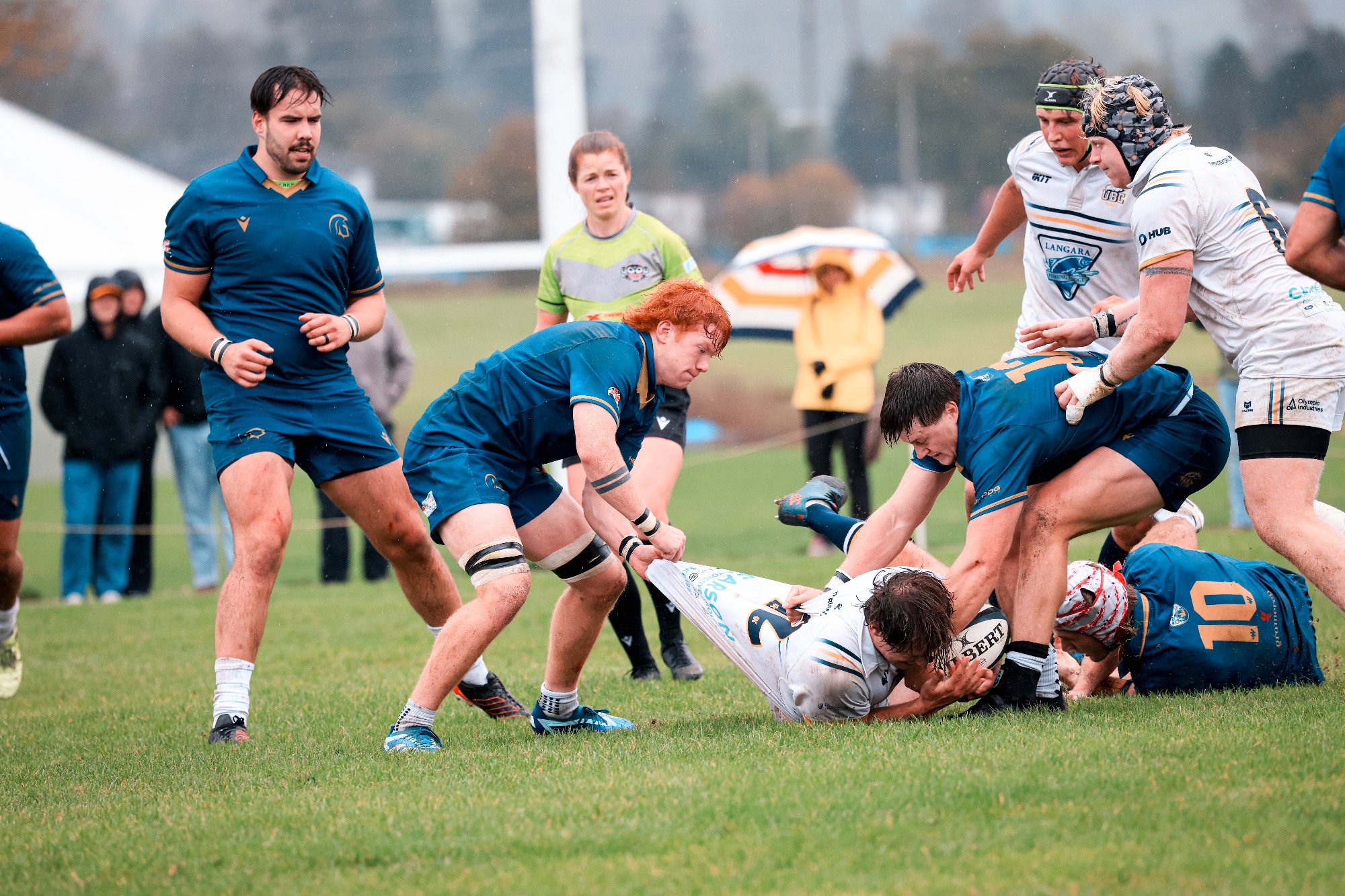 Nate Schroeder (West Kelowna, B.C.) was dangerous, stopping a few tries. The Vikes are dangerous, so if Nate doesn't make those tackles, they're through for some more points.